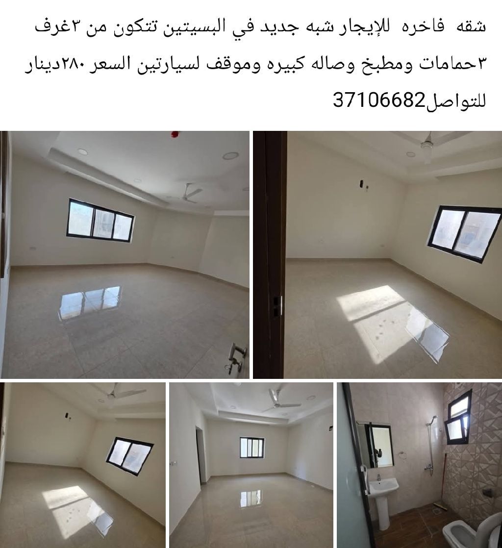 A luxurious semi-new apartment for rent in Al-Busaiteen, consisting of 3 bedrooms, 3 bathrooms, a kitchen, a large living room, and parking for two cars. Price: 280 dinars. For contact.