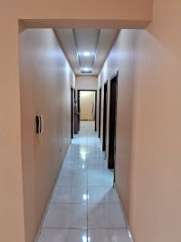 A semi-furnished super deluxe apartment for rent in Riffa Al Bahri. It contains 3 master bedrooms, a maid's room, 4 bathrooms, a living room separate from the bedrooms and kitchen, a fully equipped kitchen, split air conditioners, an elevator, two underground parking spaces inside the building, priced at 315 dinars excluding electricity. The price is final.