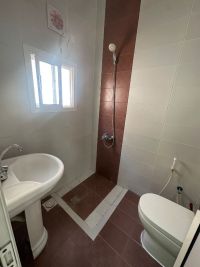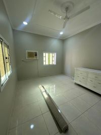 For rent, an apartment in Al-Hajiyat, fully air-conditioned (including electricity and water), unfurnished. It consists of 2 bedrooms, 2 bathrooms, a living room, a kitchen, and a laundry room on the first floor. Rent is 190 dinars (including electricity). For contact.