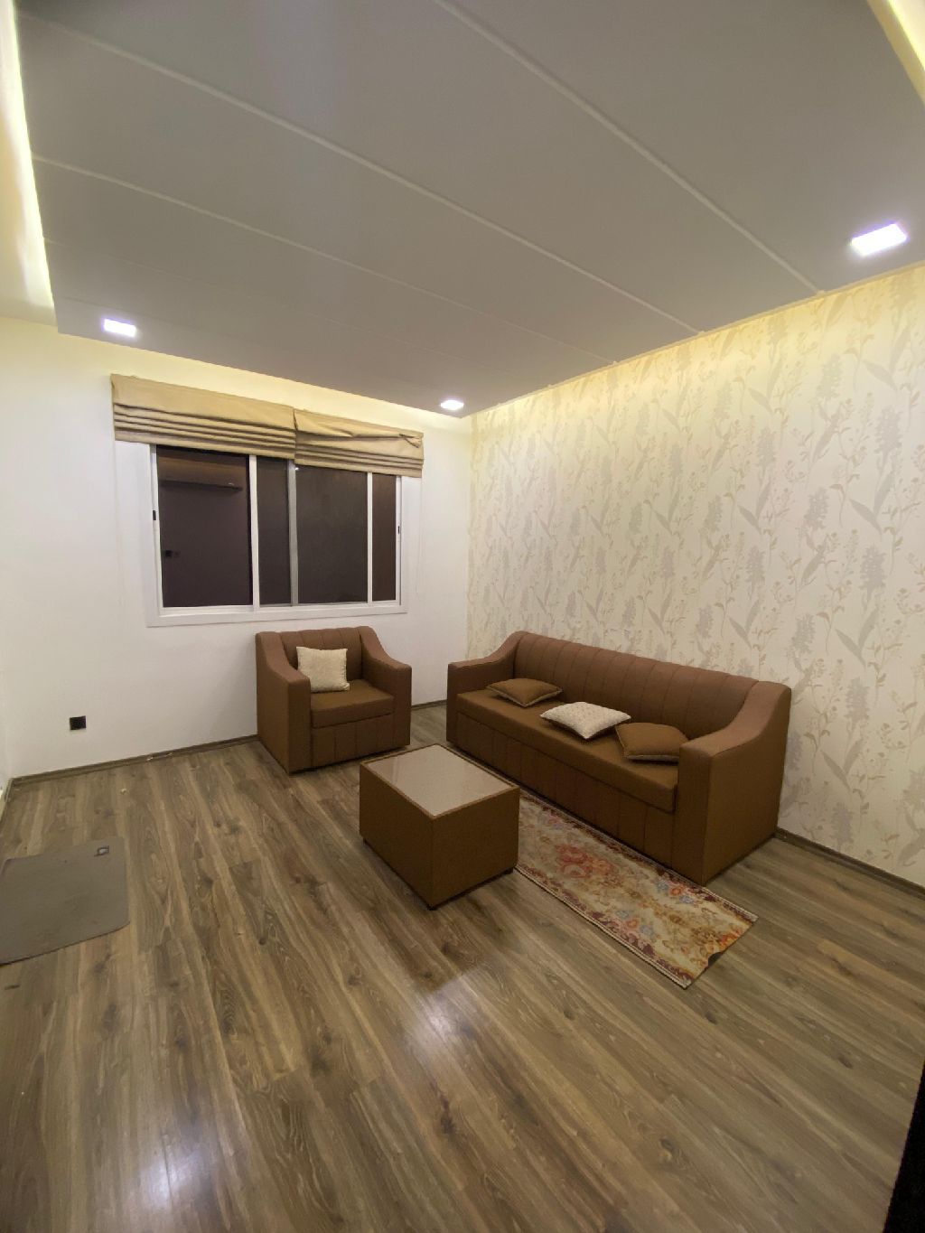 For rent, a furnished apartment in Al-Hadd consisting of one bedroom, two bathrooms, a living room, and a kitchen for 220 dinars, including electricity and water.