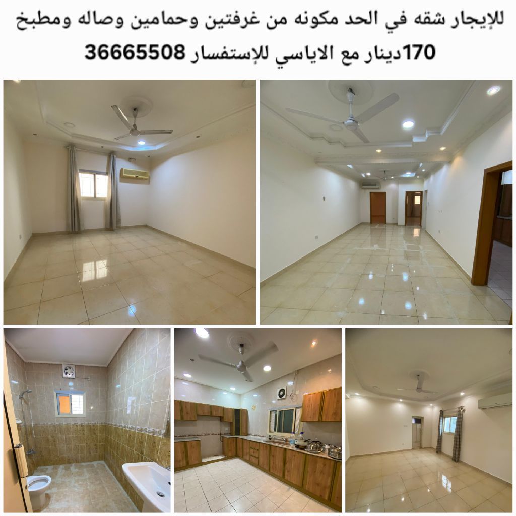 Bahrain - Al Hadd, New for rent: An apartment in Al Hadd consisting of two rooms, two bathrooms, a hall, and a kitchen for 170 dinars with air conditioning. For inquiries.