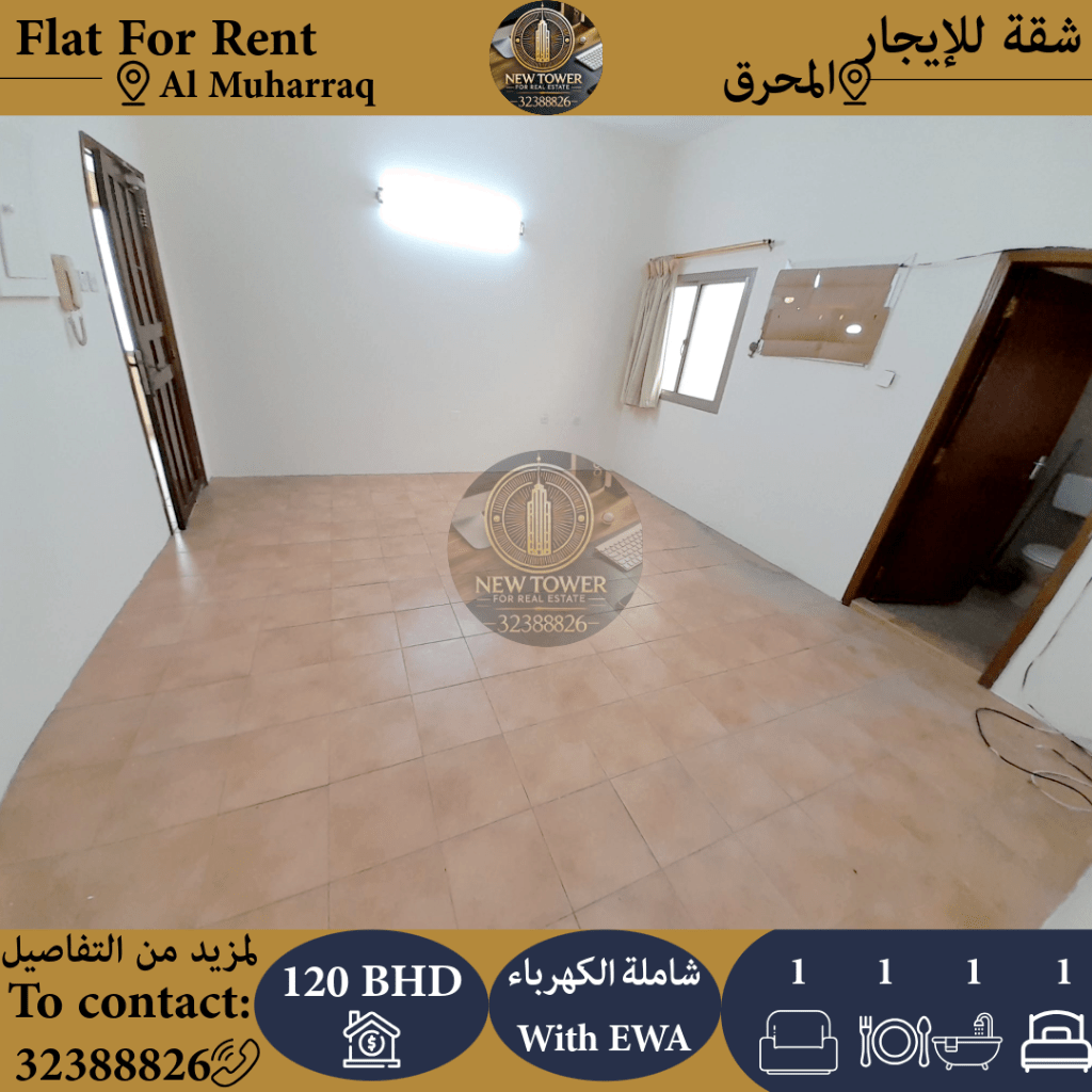 For rent: an apartment in Muharraq with a large room, bathroom, kitchen, including electricity, for 120 dinars. For contact.