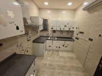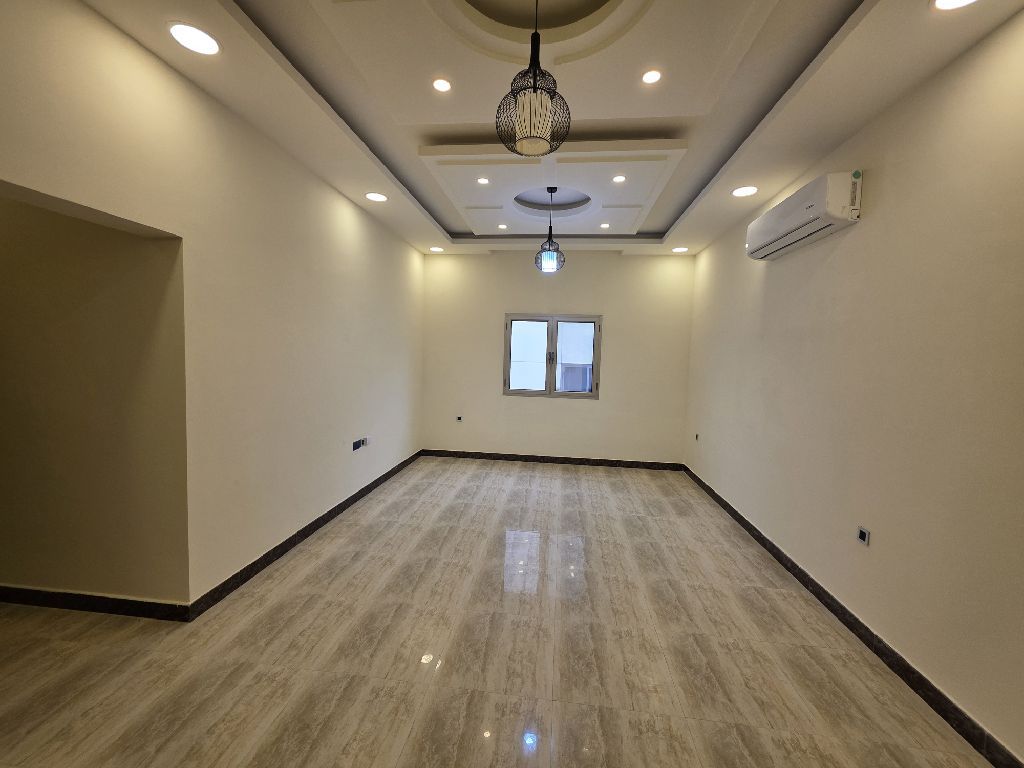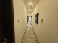 A residential apartment for rent, including water and electricity, consisting of three rooms, three bathrooms, a hall, and a kitchen. The price is 300 dinars. Services include parking, an elevator, a security guard, and surveillance cameras. The location is Al-Hadd Al-Jadeed.