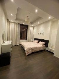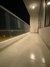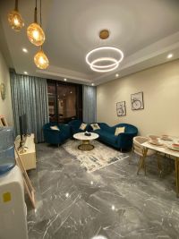 For rent: A luxurious apartment in Juffair with a sea view. It consists of one bedroom, two bathrooms, a living room with an open kitchen, a balcony, and a parking space for 380 dinars, including electricity, water, and internet. There is a swimming pool, a men's and women's gym, and a children's play area.