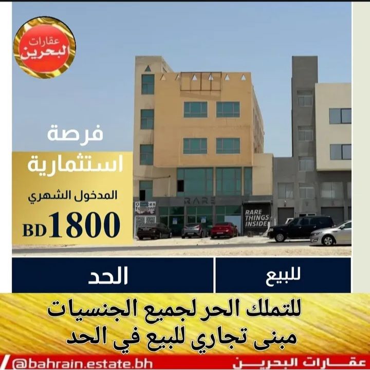 مبنى تجاري للبيع في الحد تملك حر لجميع الجنسيات. يتكون من 7 شقق و5 محلات تجارية. مساحة الأرض 365 متر مربع. السعر 295000 دينار. للتواصل.