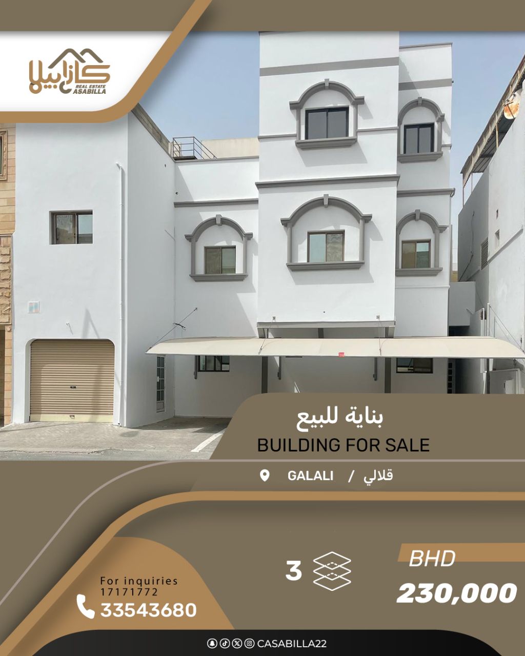 للبيع: بناية في قلالي على شارعين، تتكون من 6 شقق و4 محلات. مساحة الأرض 325 متر مربع، مساحة البناء 750 متر مربع. الطابق الأرضي: شقة واحدة بثلاث غرف. الطابق الأول: شقتان بغرفتين + شقة استوديو واحدة. الطابق الثاني: شقة واحدة بغرفتين + شقة استوديو واحدة. مجموع المدخول 1500 دينار. السعر 230,000 دينار. للتواصل.