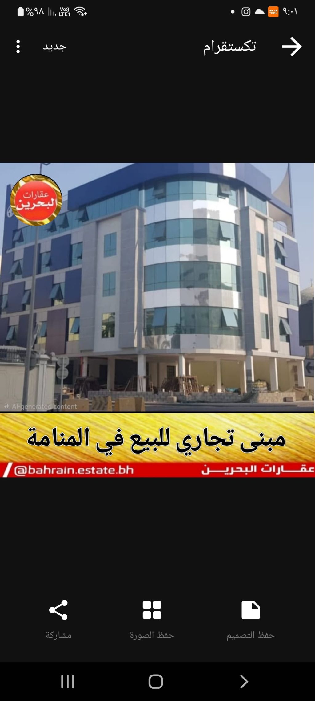 للبيع: مبنى جديد بالكامل في المنامة - مبنى تجاري وسكني حديث وجاهز، يقع في موقع مميز في قلب المنامة. التفاصيل: 12 شقة سكنية، مكاتب تجارية بمساحات مناسبة، مصعدين (2 لفت)، مواقف سيارات متوفرة. المبنى فارغ حالياً (جاهز للتأجير أو التشغيل) بتشطيبات نهائية وأعمال مكتملة. مساحة الأرض 581 متر مربع. السعر: 725,000 دينار بحريني.