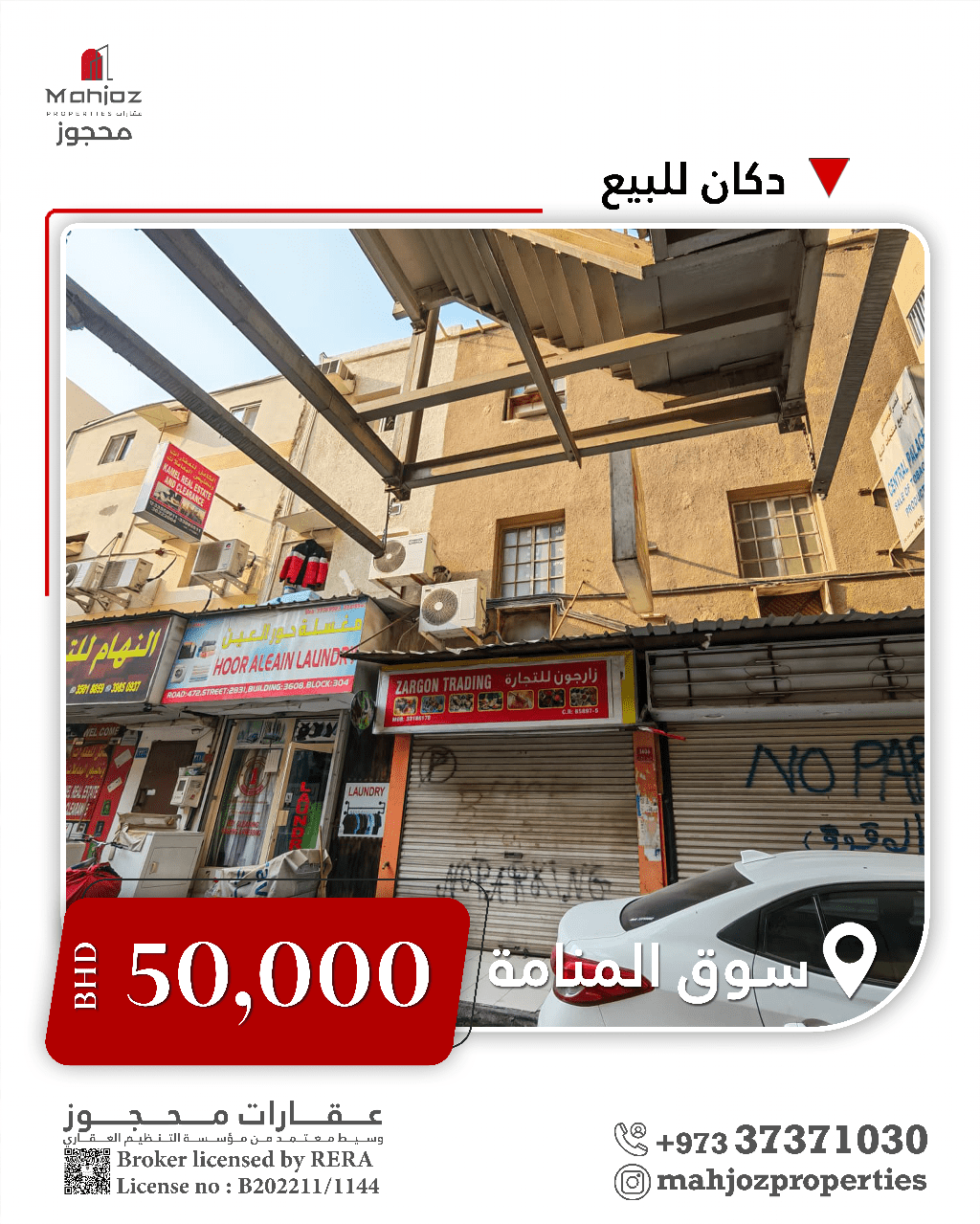 للبيع: دكان في سوق المنامة القديم، خلف فندق أوال. يتكون من 3 طوابق: الطابق الأرضي - 1 شتر؛ الطابق الأول والثاني - مخزن. مساحة الأرض: 9.9 متر مربع؛ مساحة البناء: 29.7 متر مربع. الدخل الشهري: 250 دينار. السعر المطلوب: 50,000 دينار بحريني. تواصل معنا لمزيد من المعلومات: 00973 - عقارات محجوز، عقارات البحرين، أرض - للبيع، المنامة، البحرين.