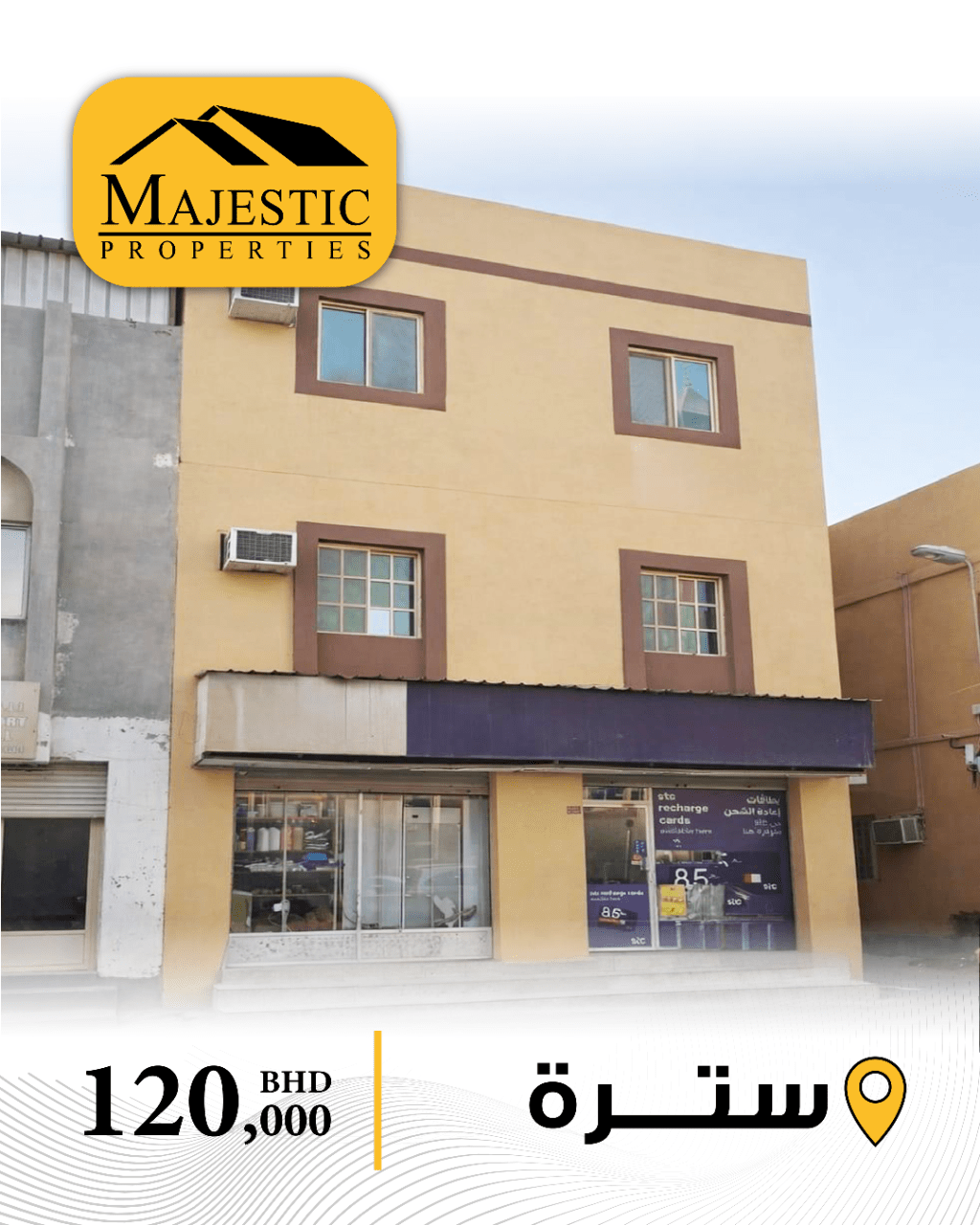 للبيع: مبنى تجاري سكني في سترة - مهزة، مؤجر بالكامل. يتكون من محليين تجاريين و6 شقق سكنية. مساحة الأرض 116.3 متر مربع. المدخول الشهري 1,200 دينار بحريني. السعر المطلوب 120,000 دينار بحريني. الرقم المرجعي MPM3421.