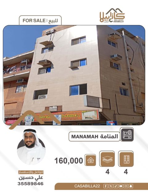 عقارات للبيع: مبنى في المنامة - المساحة 90.4 متر - يتكون من أربع طوابق - أربع شقق - ثلاثة عدادات كهرباء - السعر 190 ألف دينار. مرجع BS1533