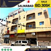Mixed use 3 storey building for sale in Salmabad, priced at BD305000. This 3 storey building is located in Salmabad, a very good area, consisting of 5 commercial shops and 11 flats of 2 BHK. It includes a lift, car parking, etc. The land area is 349 SQM, with front and back road access. We are offering BD305000, negotiable. easy access to the Highway, Salmabad, Isa Town, etc