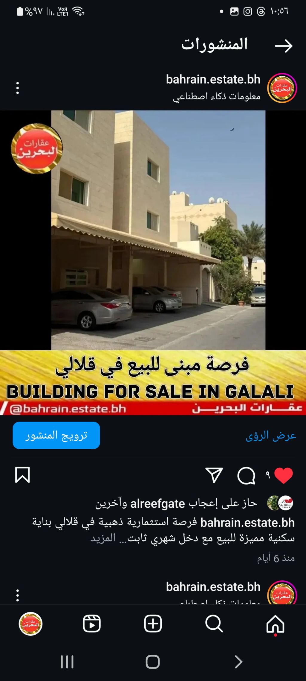 A golden investment opportunity in a distinguished residential building for sale in Qalali, an upscale area. Area: 396 square meters. Number of apartments: 7. Monthly income: 1200 Bahraini dinars. Price: 209,000 Bahraini dinars, negotiable.