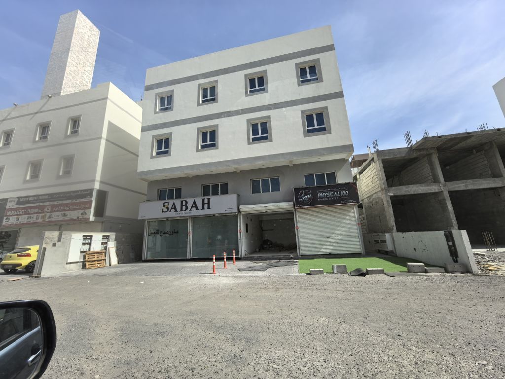 For sale: a commercial building in the Al-Hadd Al-Jadeed area, with an area of 356 square meters, priced at 280,000 Bahraini dinars. It consists of 4 shops with mezzanines, and 4 apartments, each comprising 3 bedrooms, 2 bathrooms, a living room, and a kitchen. The top floor contains 2 rooms, 2 bathrooms, and a kitchen. The expected income is 2,250 dinars.