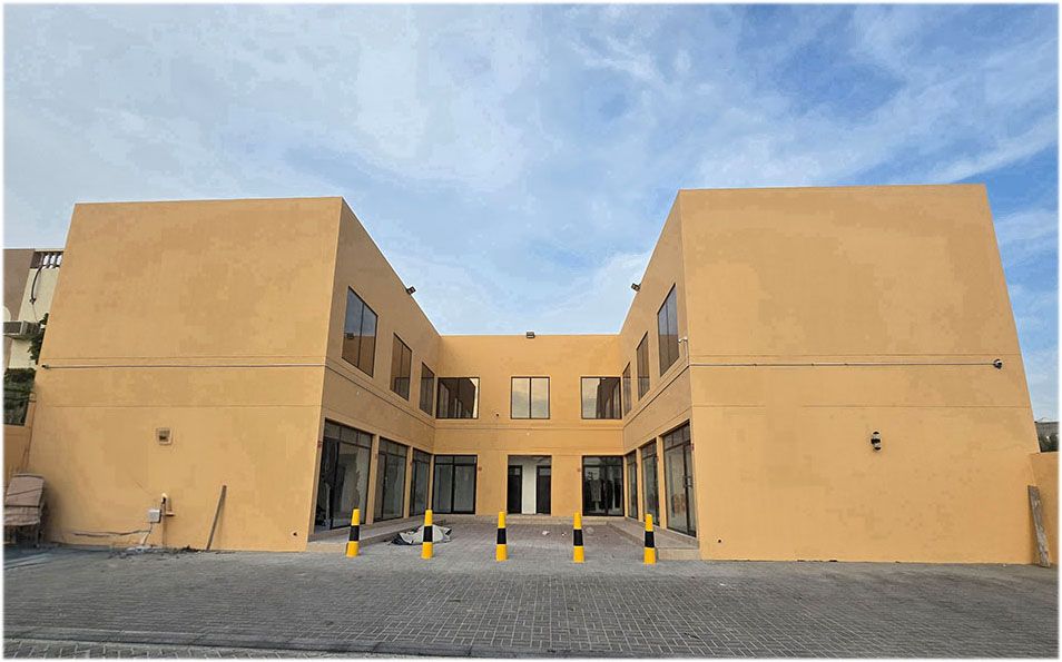 For sale: a commercial building in Hamad City, fully leased with an income of 2000 dinars. It consists of 8 shops with complete electricity and water meters. It features a prime location and is close to parking lots that can accommodate 80 cars. The requested amount is 300,000 dinars.