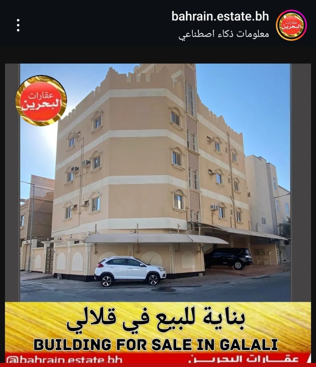 A building for sale in Qalali on two streets and a corner. It consists of 7 apartments as follows: 4 apartments with two master bedrooms, a spacious living room with a bathroom, a small storage room, and a spacious kitchen. Two apartments with three master bedrooms, a spacious living room with a bathroom, a small storage room, and a spacious kitchen. One apartment on the ground floor with a villa system, containing three master bedrooms, two spacious living rooms with a bathroom, a spacious internal kitchen, space for an external kitchen, a courtyard, and separate car parking from the building. There is an electric elevator in the building. The land area is 383 square meters.