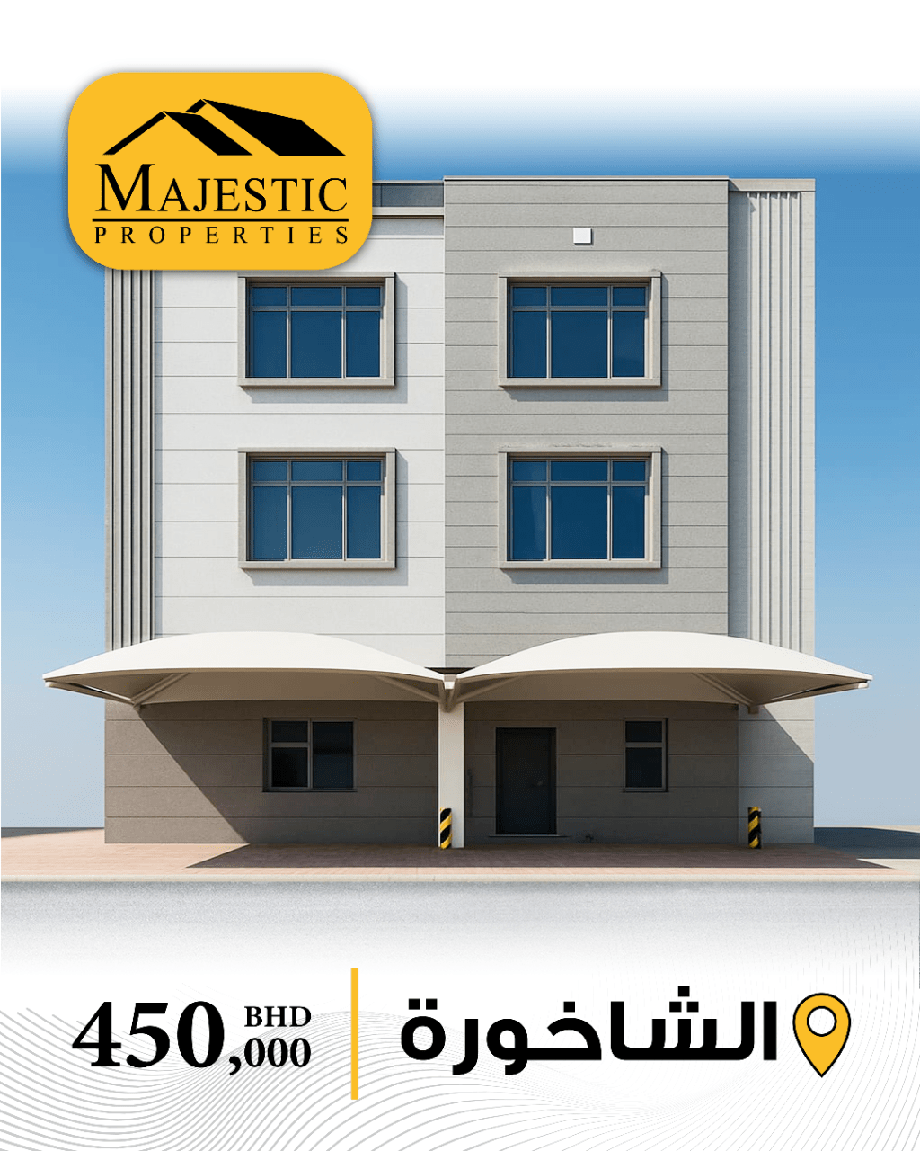 For sale: A new residential building in Al-Shakhura, near St. Christopher's School. It consists of 10 apartments, has an elevator, dedicated car parking, and a monthly income of 2,750 Bahraini dinars. The land area is 511 square meters. The asking price is 450,000 Bahraini dinars. Ref: MPM3281.