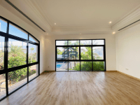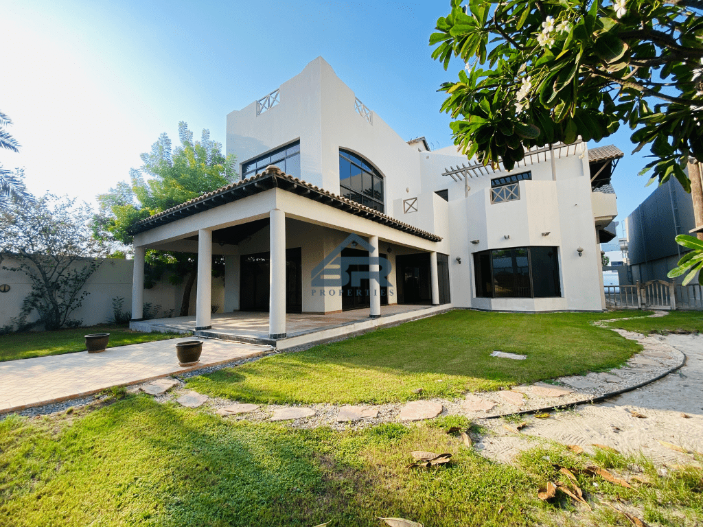 Beautiful villa with a private outdoor haven. It has 6 bedrooms, 6 bathrooms, an exclusive EWA guest washroom, an open kitchen, an outside kitchen, and is semi furnished. Includes a living and dining area, spacious bedrooms with connected bathrooms, a private garden, a maid's room, a driver's room, a private garden with a kids'play area, swimming pool, a gym, a laundry room, a store room, 24 - hour