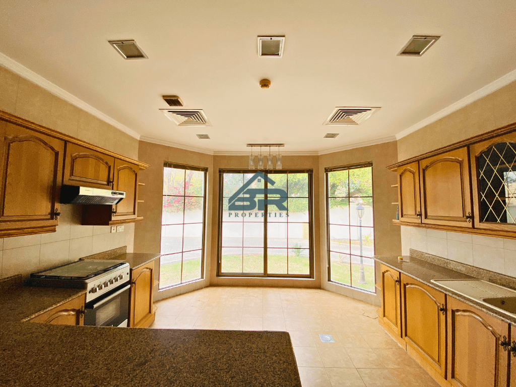 Wake up to paradise. rent this beautiful villa and enjoy peace, privacy, and premium comfort. Inquire now. It features 4 bedrooms, 5 bathrooms, is exclusive of EWA, semi furnished, has a closed kitchen, a spacious living area, closed parking, and is located in a peaceful and scenic compound. Amenities include a private swimming pool with a backyard, maid's room, laundry room, store room, kids'play