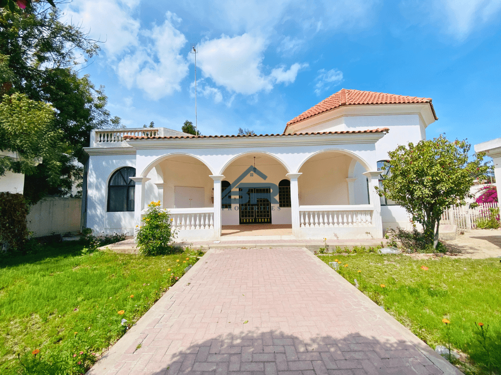 Bright and spacious single-story villa with a generous kitchen, 4 bedrooms, 4 bathrooms, semi-furnished, exclusive of EWA. It features a spacious kitchen, a spacious living area, a front yard with garden space, a maid's room, a laundry room, closed parking with 2 slots, a calm location, and 24-hour security. Rent is BD800, DL 2297.