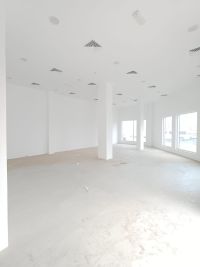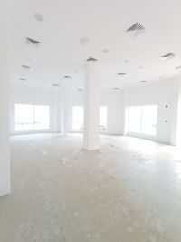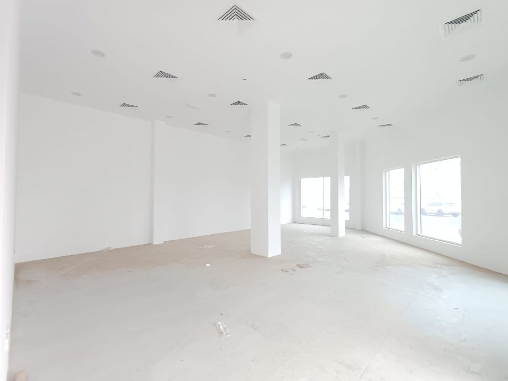 Commercial showroom for rent in a strategic corner location in Salmabad, equipped with central air conditioning, two bathrooms, and a kitchen. The area is 116 square meters with a glass facade. Parking is available. The price is 700 Bahraini dinars. For contact.