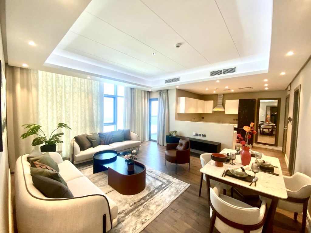 A new luxurious fully furnished apartment for sale in the heart of Juffair with a full sea view. The apartment consists of one bedroom, two bathrooms, a living room, a balcony, and a fully equipped kitchen. The tower facilities include a swimming pool, a gym, game rooms, prayer rooms, and much more. The area is 80 SQM. The price is 52000 Bahraini dinars negotiable. Please contact