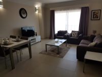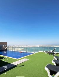 A golden opportunity for investment or living a furnished apartment for sale in Tilal Tower, Amwaj Islands. The 13th floor consists of two master bedrooms, a large living room, an open kitchen, a laundry room, three bathrooms, and three balconies overlooking the lake and sea, providing a beautiful and peaceful view for relaxation. The apartment area is 121 SQM. The tower includes a gym