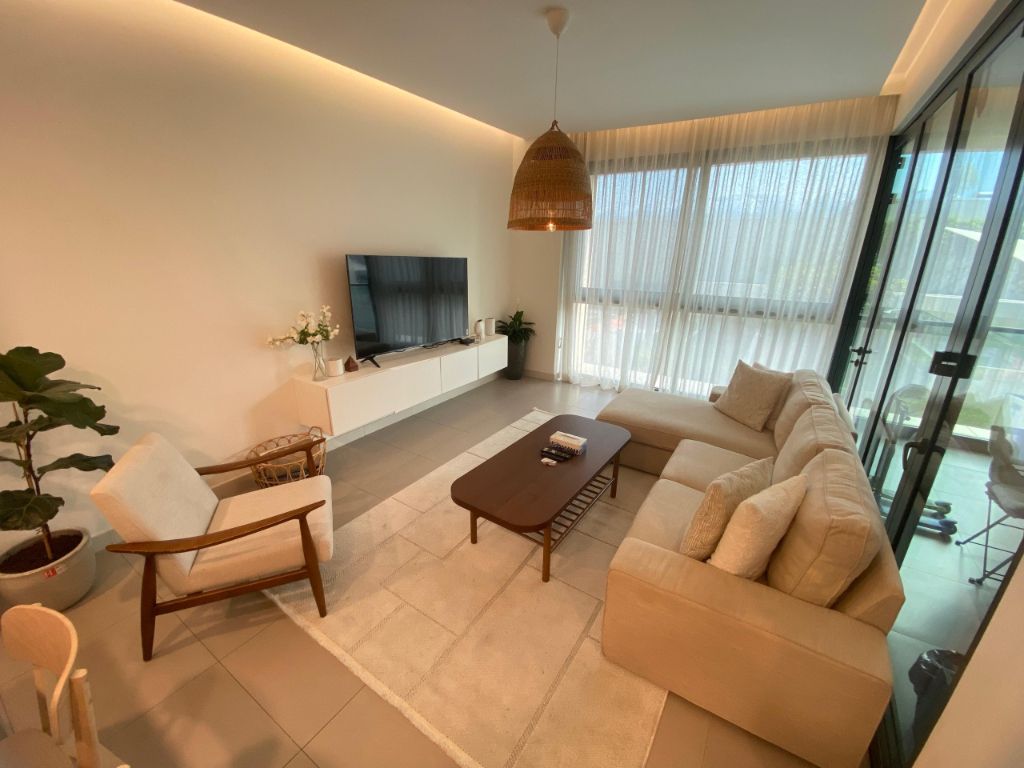 Dominions real estate for sale An elegant apartment for sale in Diyar Al-Muharraq (Marasi Ruz Dens project) The apartment consists of 2 bedrooms, 3 bathrooms, an elegant living room with an attractive view of the swimming pool, a fully equipped open kitchen, and a balcony for outdoor relaxation. The project amenities and services include a swimming pool, a health club, security and reception staff