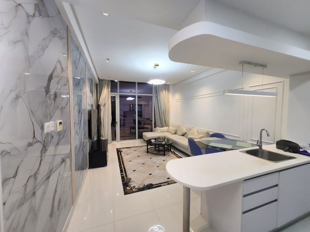 For sale or rent: A luxurious apartment with a modern design. It is more luxurious than others in a very beautiful area in Al Juffair. It consists of a bedroom, two bathrooms, a spacious living room, and an American-style kitchen equipped with all modern appliances. The apartment is fully furnished and overlooks the sea. All entertainment services are available in the building. For rent at a price of 350 dinars, including electricity and water. For sale at 42,000 dinars. For contact: B201804 / 0125 license number. Ad number (28).