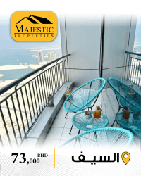 For sale: A fully furnished apartment in Seef (ERA Tower) with a sea view. It consists of a bedroom, living room, open kitchen, two bathrooms, and a balcony. The area is 71 square meters. The asking price is 73,000 Bahraini dinars. Reference: MPM3386.