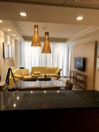 شقة فاخرة مفروشة بالكامل للإيجار في منطقة الدلمونيا، مكونة من غرفتي نوم وصالة و3 حمامات وغرفة خادمة وموقف سيارات ومصعد وسينما وجيم وحمامي سباحة بسعر 700 دينار شامل الكهرباء والماء