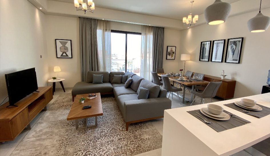 للإيجار شقة فاخرة في منطقة سار، قريبة من مدرسة سانت كريستوفر، تتكون من غرفتين نوم، حمامين، صالة معيشة واسعة، غرفة طعام ومطبخ مفتوح. المرافق صالة رياضية، واي فاي، أمن على مدار الساعة. سعر الإيجار 450 دينار (شاملا رسوم الكهرباء والماء حد أقصى 30 دينار والانترنت)
