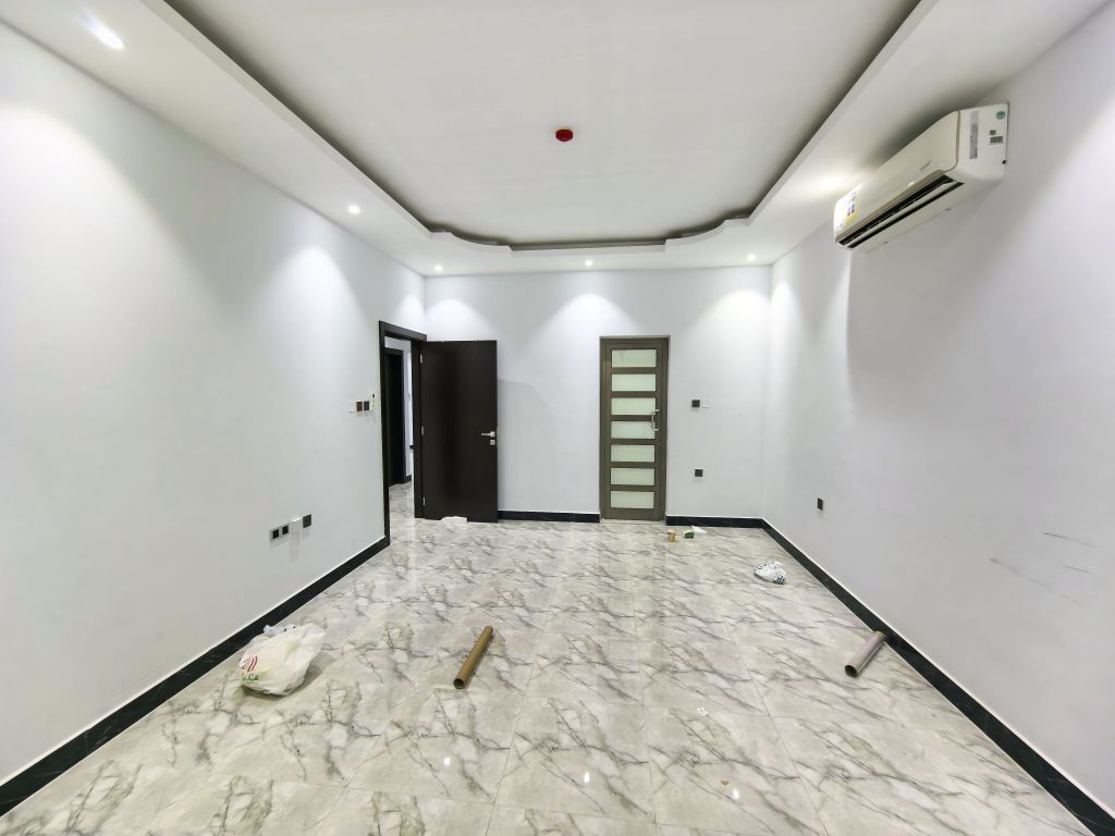 للإيجار: شقة سكنية مكونة من ثلاث غرف وحمامين وصالة ومطبخ. المساحة 107 متر مربع. السعر 250 دينار، بدون كهرباء. الموقع الحد الجديد. الخدمات تشمل موقف سيارات ومصعد وحارس أمن وكاميرات مراقبة.