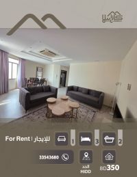 فرصة مميزة للإيجار: شقة 3 غرف مفروشة بالكامل في منطقة الحد. أولاً، تفاصيل الشقة: 3 غرف نوم، إحداها غرفة ماستر، حمامان، صالة واسعة، مطبخ مجهز بالكامل. الخدمات والمرافق: موقف سيارة، مصعد. سعر الإيجار: 350 دينار، شامل 50 دينار للصيانة. للتواصل.