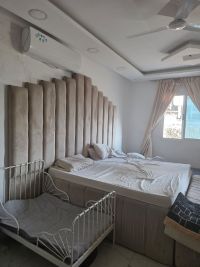 للإيجار: شقة في الرفاع البحري، تشمل الكهرباء، مفروشة بالكامل، تتكون من غرفتين، حمامين، مطبخ، وصالة. السعر فقط 320.