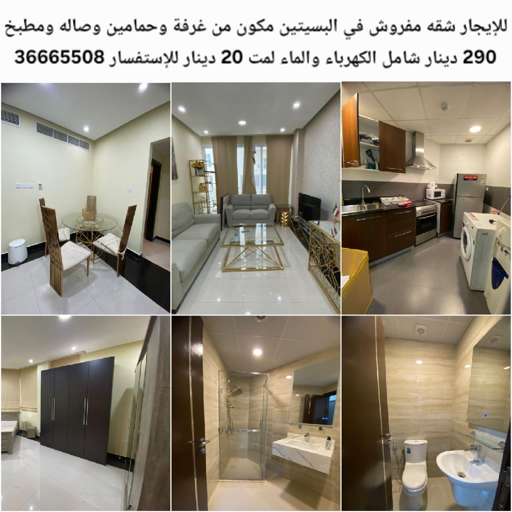 للإيجار: شقة مفروشة في البسيتين مكونة من غرفة نوم واحدة، وحمامين، وصالة، ومطبخ مقابل 290 دينار، تشمل الكهرباء والماء حتى 20 دينار.