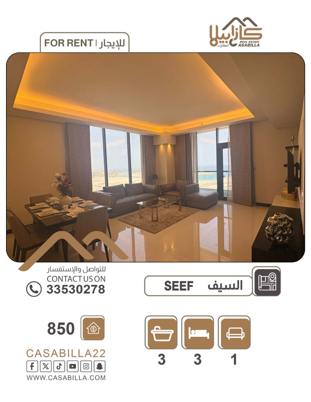 عنوان فاخر بالقرب من سيتي سنتر، سكن نخبة بثلاث غرف وإطلالات تخطف الأنفاس. اكتشف معنى الرفاهية في واحدة من أوسع شقق السيف. شقة متكاملة بثلاث غرف نوم، مصممة خصيصًا لمن يقدر المساحات الكبيرة والإطلالات البانورامية التي تخطف الأنظار في قلب أرقى المناطق التجارية والسكنية. تتكون من ثلاث غرف وصالة وثلاث حمامات وبلكونة. السعر: 850 دينار، حد الكهرباء: 40 دينار. للتواصل.