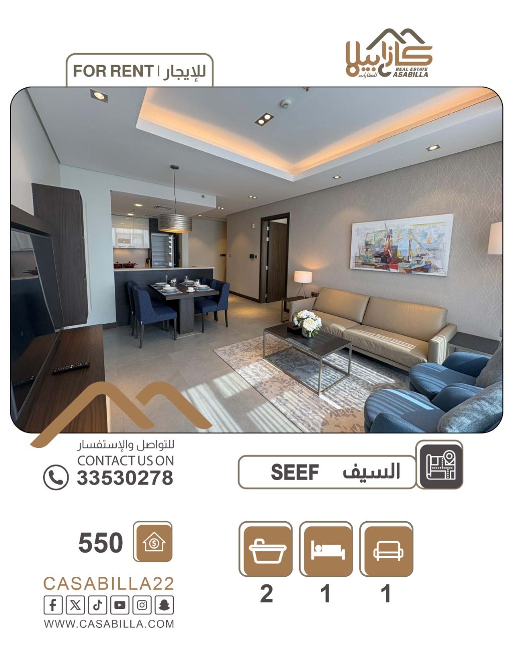 اطلالة ترسم ملامح الرفاهية في السيف. ارتق بأسلوب حياتك وأسكن فوق السحاب في شقة عصرية تمنحك مزيجا مثاليا بين الاطلالات الساحرة والهدوء التام في أحد أرقى أبراج المنطقة. تتكون من غرفة صالة وغرفتي نوم وحمامين. السعر: 550 دينار. حد الكهرباء: 25 دينار. للتواصل.