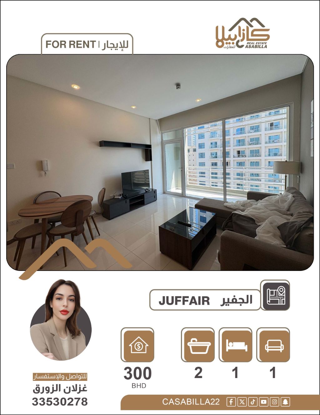 شقة للإيجار في منطقة الجفير، تقدم استقلالية تامة في إحدى أرقى وجهات العاصمة. استمتع بأسلوب حياة يجمع بين العملية والرفاهية في مسكن صُمم ليلبي تطلعاتك، مع ميزات إضافية تمنحك الراحة التي تستحقها في قلب الجفير. تتضمن غرفة ومطبخ وصالة وحمامين وبلكونة. السعر 300 دينار، والكهرباء 20 دينار. للتواصل.
