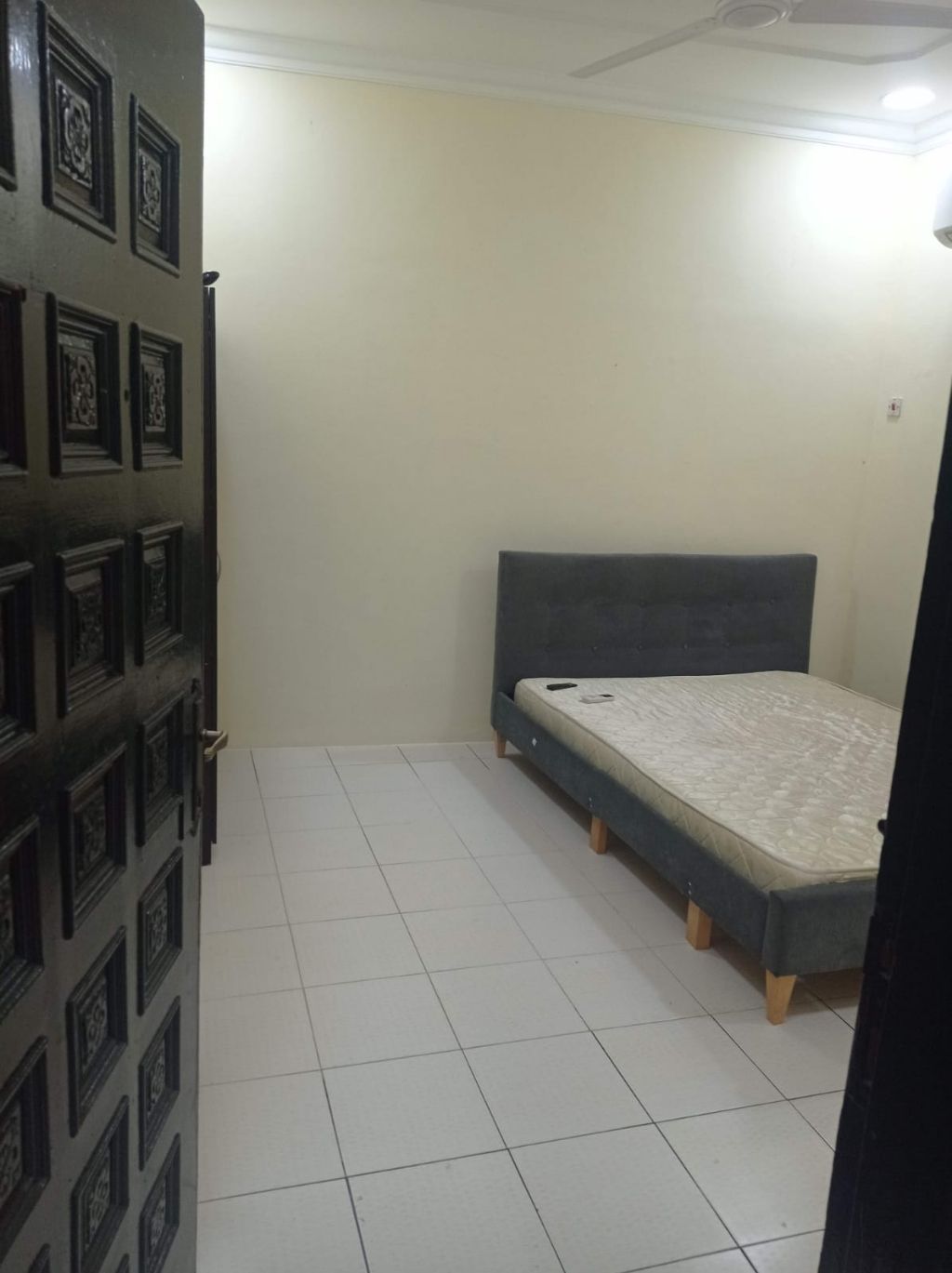 شقة مفروشة للإيجار في المحرق قرب مخبز دلمون، مكونة من غرفة نوم واحدة، حمام واحد، صالة، ومطبخ. المطلوب: 150 دينار شامل.
