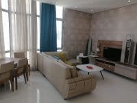 For rent, an apartment in the Juffair area with a sea view, consisting of one bedroom, a living room, and two bathrooms, with an open American - style kitchen and built - in cabinets in the building, along with a private parking space in the tower. It includes all services such as a men'swimming pool, a women'swimming pool, a jacuzzi and sauna foreman and women, a men'gym and a women'gym, and 24 - hour