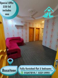 Attractive offer in Al - Busaiteen A fully furnished apartment for rent with two rooms, all inclusive for only 220 dinars. Features include 2 rooms (new beds) 1 bathroom, living room, kitchen, first floor without elevator, close to services. Price is final and non - negotiable