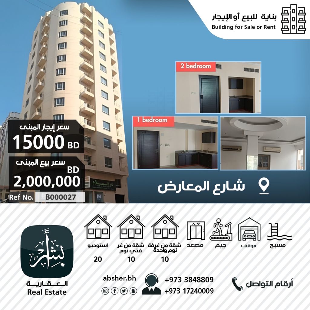Investment opportunity: A building for rent or sale in the heart of the capital, Manama, on Al-Ma'arid Street, fully equipped. For contact.