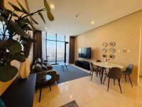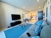 For rent, a fully furnished apartment in the Juffair area, close to shopping malls, including electricity and water. The apartment features two bedrooms, two bathrooms, a living room, and a fully equipped open kitchen with all appliances. Building amenities include a parking lot, swimming pool, gym, sauna and steam room, cinema, and basketball court. The area is 102 square meters. The monthly rent is 704 Bahraini dinars, including electricity and water. Reference AH - FR 01746. For inquiries, please contact us at the numbers.