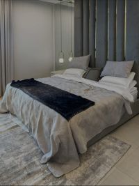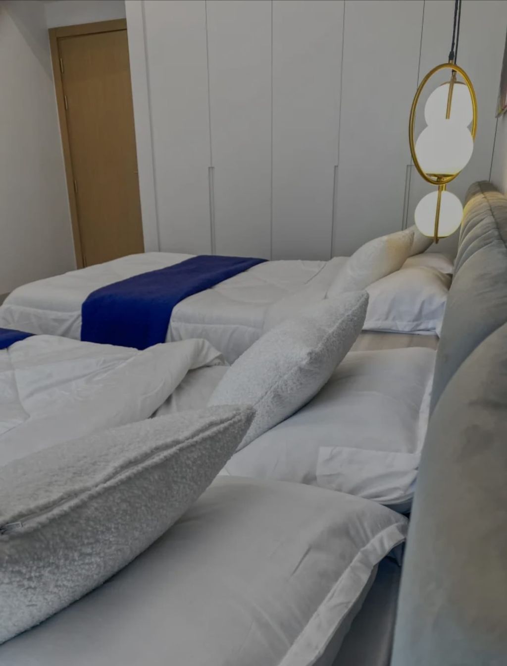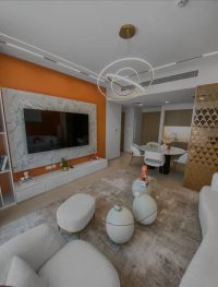 A luxurious fully furnished apartment for rent in Marassi, consisting of two bedrooms, one of which is a master bedroom, two bathrooms, a living room, a kitchen, and a balcony. A swimming pool and a gym are available as part of the facilities. The rent is 550 Bahraini dinars, including electricity and water up to 30 Bahraini dinars. Please contact