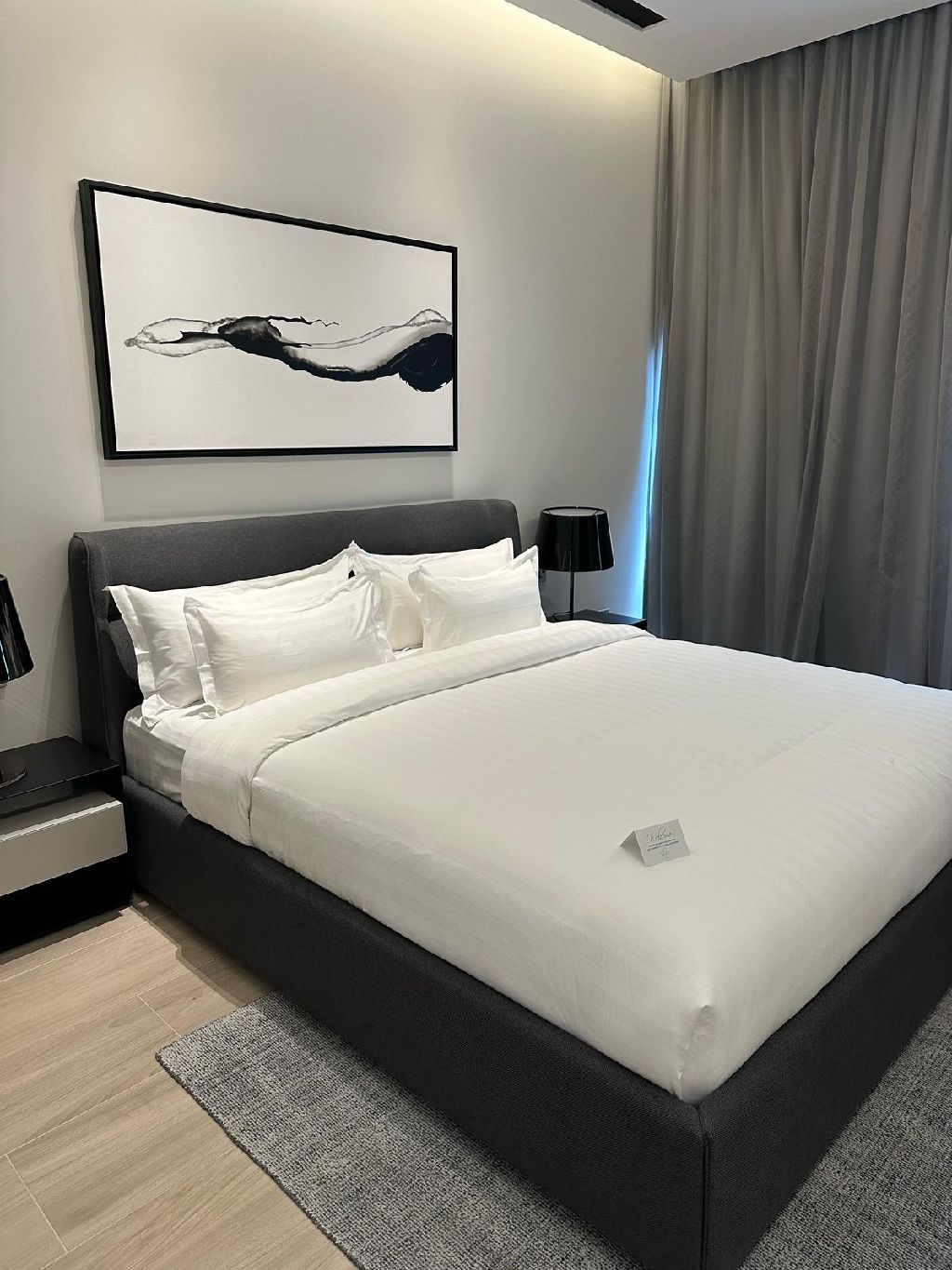 Opportunity for rent Fontana Infiniti - Juffair. A luxurious apartment with a modern design in a prime location. Features a spacious master bedroom, an open living and dining area with a kitchen, two bathrooms, a large balcony, high - end finishes, and comfortable, ideal spaces. Price BD550, excluding electricity and water at BD25. Complex advantages a vibrant location in the heart of Juffair