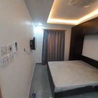 A fully furnished studio for rent in Al Qudaibiya near Al Zubara Street, consisting of 1 bedroom, 1 bathroom, and a kitchen with full furnishings. The building is equipped with WiFi - and surveillance cameras. The price is 170 dinars, including electricity and municipality fees