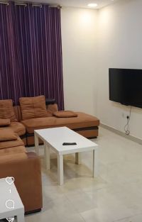 For rent in Riffa Al Bahri, near the petrol station, a very clean and elegant studio, fully furnished, one bedroom, large living room, two bathrooms, kitchen, elevator, parking space, security guard, central satellite system, security cameras, very clean building, excellent location. Price 280 Bahraini Dinars excluding utilities, and electricity is subsidized by the owner. Video available.