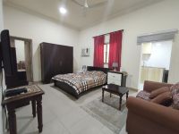 Jid Ali ground floor furnished studio flat for rent. BD170 with EWA, BD30 limit. Entrance, 1 bedroom, 1 bathroom, close kitchen, and small open space outside. Elevator available. Reference number K060502. Contact for details