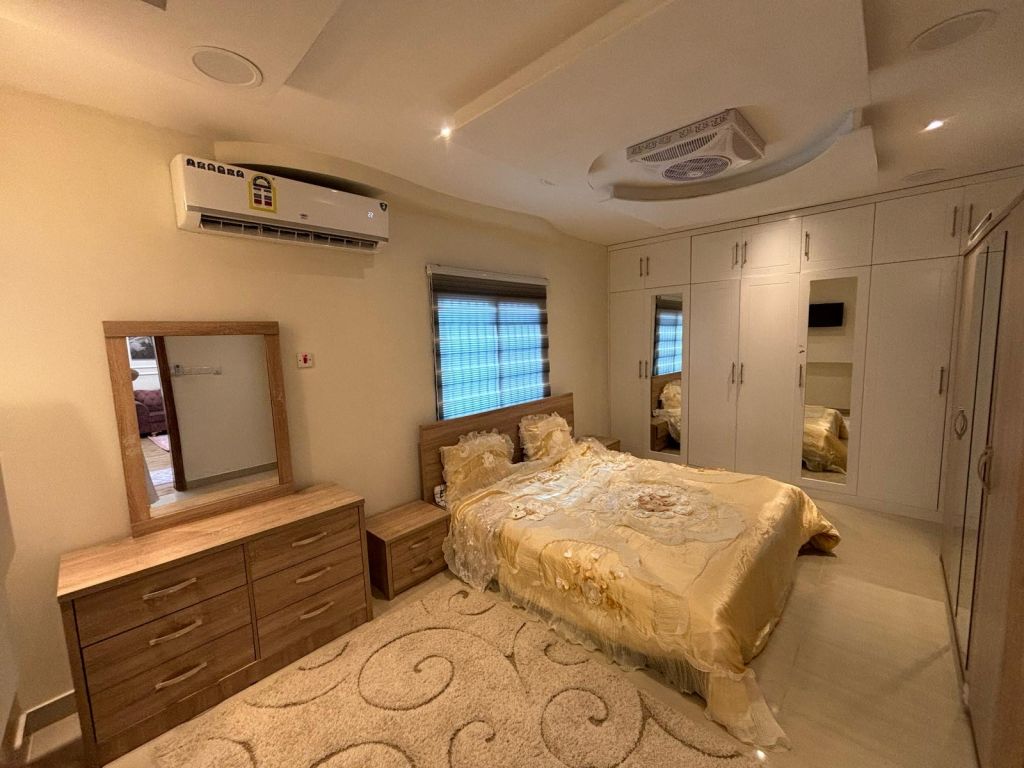 For rent, a furnished apartment with elegant furniture in Al-Buhair, near the Indian School, consisting of two bedrooms, two bathrooms, an American kitchen, and a small storage room. The apartment is very clean and has undergone full maintenance, and there is a private parking space for the apartment. The price is 350 including electricity without utilities. For contact.