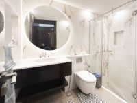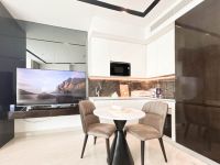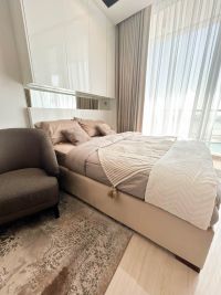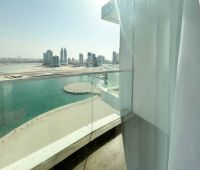 For rent, a fully finished studio apartment in the Water Garden area, near EWA compounds. The studio features a bedroom, bathroom, living room, and an open kitchen fully equipped with all appliances. Building amenities include parking, a swimming pool, and a gym. The monthly rent is 320 Bahraini dinars, including electricity and water fees. Reference number AH - FR0107. For inquiries, please contact